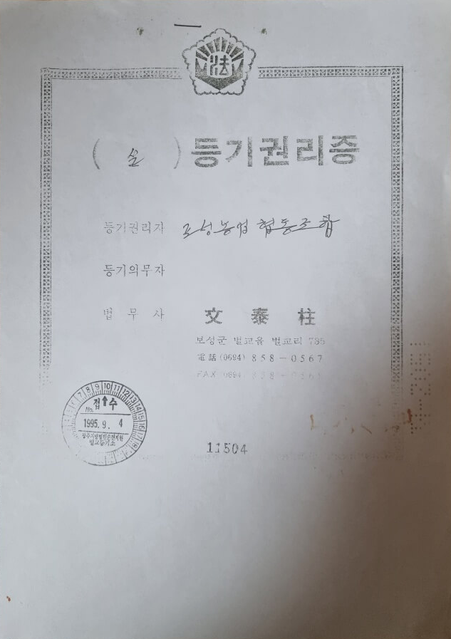 2. 등기권리증(등기필정보 및 등기완료통지서): 근저당 설정 계약 시 설정한 등기권리증으로 은행에서 보관하고 있음