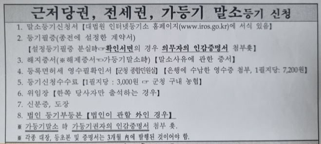 ▣ 셀프 근저당권 말소 등기 시은행에서 처리할 서류