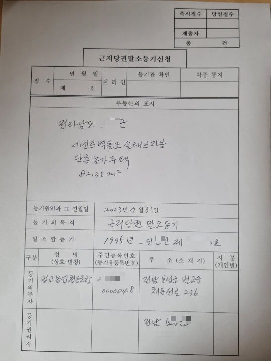 ▣ 셀프 근저당권 말소 등기 시업무 처리 절차