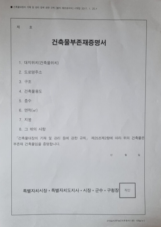 1. 군(시,구)청에 문의하여 건축물대장 존재여부 확인