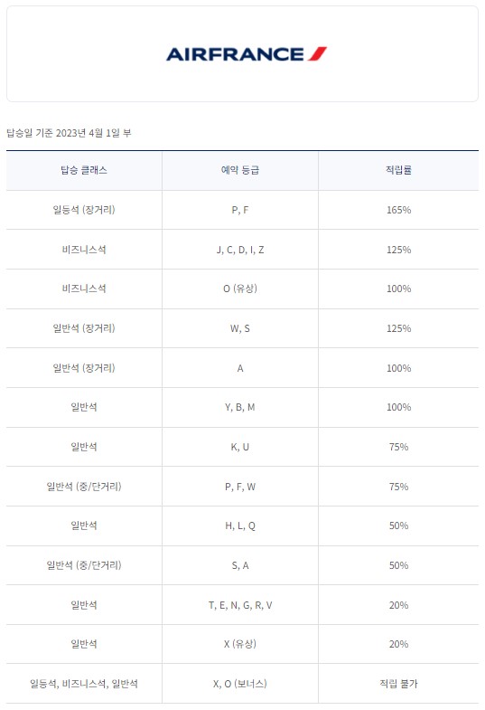 스카이팀 및 제휴 항공사 대한항공 스카이패스 마일리지 적립 기준