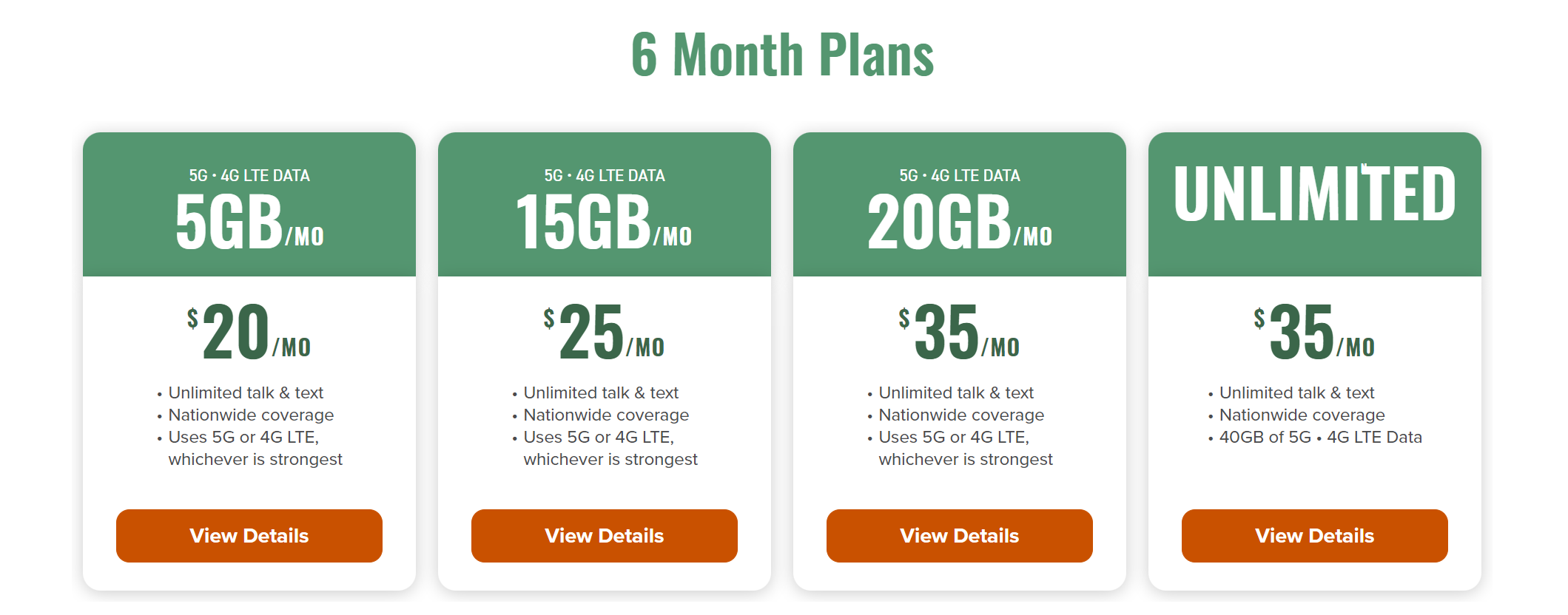 12개월 요금제는 가장 저렴한 가격으로 민트 모바일 서비스를 이용하실 수 있습니다. 필요한 플랜을 선택해주세요.